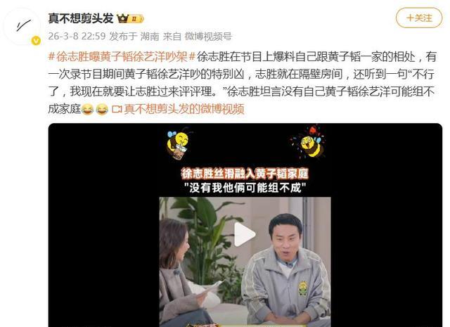 网友们纷纷调侃,“别人吵架伤感情,黄子韬徐艺洋吵架秀恩爱,还顺便带火了调解员徐志胜”,甚至有人建议徐志胜直接出道,当内娱专业家庭调解员,但在这份调侃背后,藏着的是大家对这份感情的羡慕。